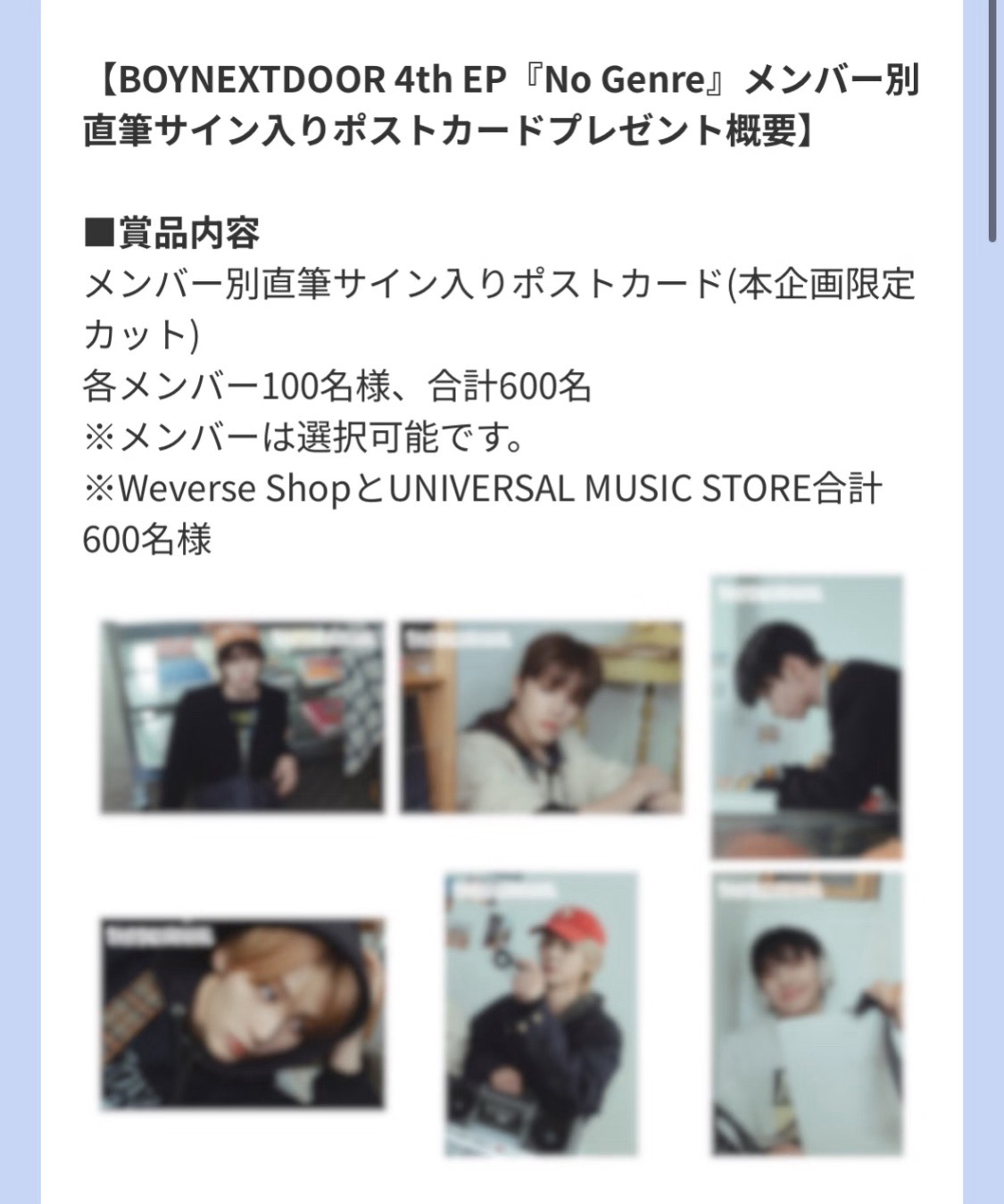 No Genre wvs、環球 抽選親簽明信片