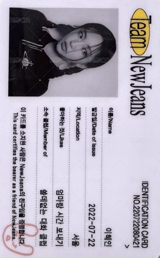 New Jeans 專輯卡 Hyein ver. ID卡