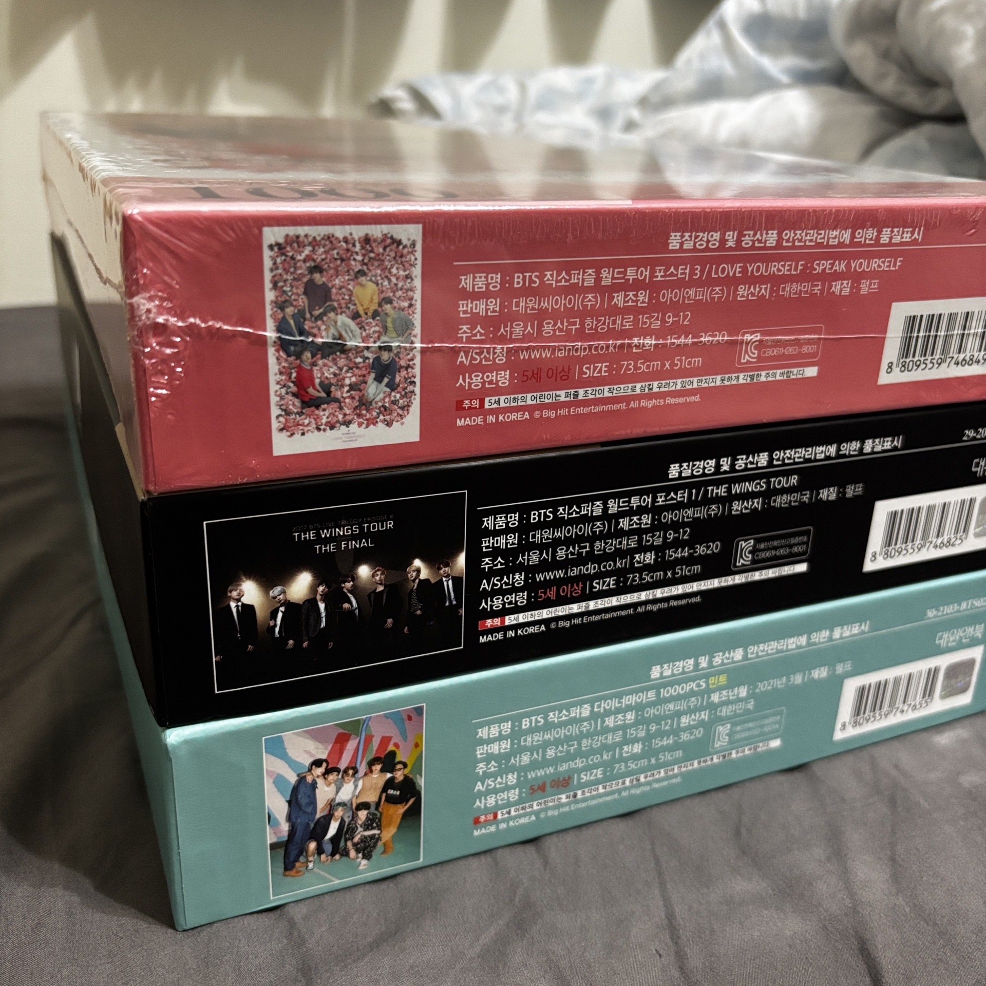 📍商品說明 🔹古代商品默認廠損 🔹高標請先私訊物況或自行繞道,謝謝🙏🏻 🔹此商品內容物:含小卡、海報、拼圖、資料夾全在,依物況已反映於售價上。 💜Wings Final 封膜已拆,僅檢查內容物。 💜SY Tour 全新未拆。 💜Dynamite綠色直版 已拆有拼過,膠水還在。 🔹此商品明顯瑕疵備註:古代商品且為大型,當初官方通路購入,邊角基本無損,超高標自行繞道。