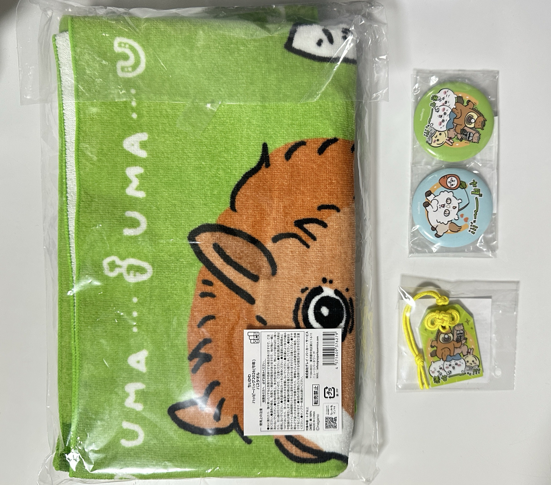 浴巾$450 徽章*2 $100 御守$100