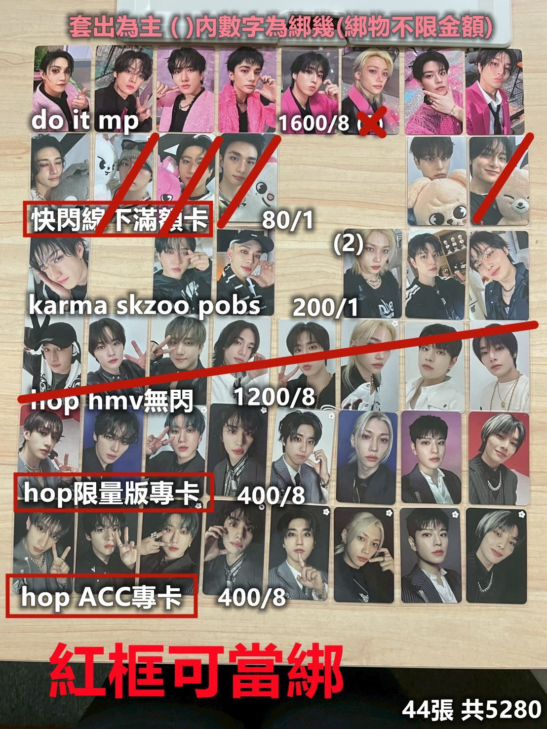 do it MP/快閃線下滿額/karma skzoo pobs/hop限量版專卡/hop ACC專卡 多社同步,下單後若於其他地方先售出則會取消訂單 默認廠損,套出為主,彬可拆賣(專卡不拆) (綁二)為綁兩件不限金額,可私訊我挑綁 有問題都可以私訊詢問🙋