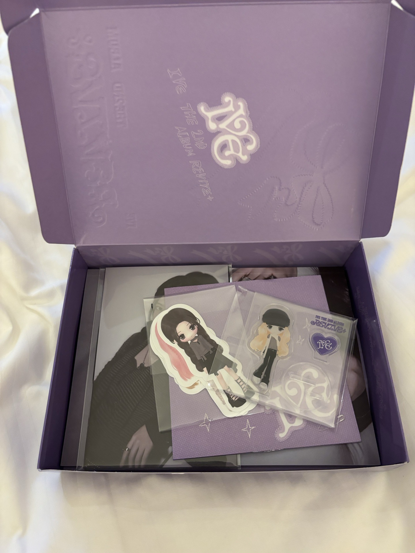IVE-正規二輯[REVIVE+]LOVED IVE ver (空專/已拆) 寄出配置:OUT BOX、寫真書、明信片組、CD、摺疊海報、ILLUST STICKER PACK(🈚️小卡跟立牌) $132 ⚠️不議價 ⚠️默認廠損 ⚠️運費自付